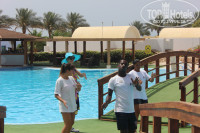 Есть 4 бассейна. Центральный - где всегда анимация и ходят всякие предлагатели массажей. Одинаково напрягают и одни и другие. Поскольку людей мало - ходят и напрягают безпрерывно. Есть релакс-бассейн, где надо соблюдать тишину. Аквапарк с бассеном. Аквапарк небольшой. 2 средних горки - остальное все чисто детское. Там всегда куча народу с детьми. И семейный бассейн - просто маленький и большой бассейн рядом. Где купаються и взрослые и дети. Первый день мы побыли на общем бассенйе, а потом перебрались на релакс - так как задалбывают всякими предложениями. На релаксе мы проводили и дни и вечера. Все кто приходил с детьми или шумел - всех сразу проганял администратор. Потому мы там были практически одни. Весь бассейн и бар был в нашем распоряжении. Бармен Эслам стал нашим другом и до сих пор переписываемся в ФБ. За чаевые он нам носил напитки не только со своего бара но и бегал в центральный бар за хорошим вином (которое только за деньги продавали, а нам в качестве комплимента) и приносил прямо к шезлонгу. Поправлял нам зонтики и смотрел за вещами, если мы уходили на обед. После 18-00 там все бары закрываються, а мы могли наслаждаться бассейном хоть до 22-00. Даже вечерами приходили там просто посидеть и попить коктейли подальше от шума и развлечений. Лежаков на всех бассейнах всем хватало даже при полном заселении, так что бежать и занимать в 4 утра не обязательно. Полотенца тоже всем выдают без проблем, правда в течении дня не меняют, но честно говоря у нас такой необходимости не было.