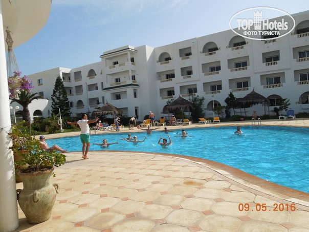 Мне отель понравился. Заселили нас очень быстро. Номер чистый ( убирались каждый день). Полотенца меняли.По телевизору показывал один канал ( МузБокс) и то рябил. Смотреть невозможно, Мы смотрели фильмы по Вай фай в холле отеля и в кольянной (кстати там оч. добрый, замечательный дядечка работает) ну и что дома скачали. Еда замечательная (все очень вкусно), мясо разнообразное, гарниры разные, салаты, выпечка. Голодными никогда не оставались!!! Да фруктов маловато, были только апельсины (очень сладкие и вкусные) и арбуз( тоже очень порадовал). На территории 2 бассейна (один в здании теплый (аж пар на стеклах), другой на улице. Есть свой пляж на море (маленький) , зонтики очень плотно друг к другу вкопаны. Лежак за территорию пляжа не разрешают выносить. Полотенце на пляж выдают под залог 10 динар (и не выбрасывайте квитанцию, которую вам выдадут на ресепшене, а то обратно без неё деньги не вернут). Анимация была каждый день, развлекали хорошо (шоу с питонами, файершоу, ну и конечно же мисс отель, мистер отель, мальчики против девочек). Погода в начале мая была не очень (3 дня был очень сильный холодный ветер и море штормило), мы в это время брали экскурсии.Потом погода наладилась и мы загорели и в море все же накупались ( хотя оно и не совсем прогрето было, но когда зайдешь по привыкнешь , а у берега так вообще теплым кажется). Кому не нравится - заказывайте отель 5 звезд.