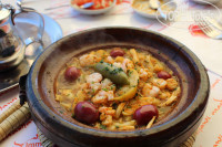 Отель понравился, мы остались довольны, что выбрали его, хотя сначала планировали другой отель (выбирали по близости расположения платных шезлонгов и зонтов на пляже, Тildi чуть дальше от них, но они нам оказались и не нужны совсем). Отель европейский, тихий, спокойный, зеленая территория и чистый бассейн. Русских практически нет. У бассейна шезлонги всегда свободны. Персонал отзывчивый. Завтраки хорошие, голодными ни разу не остались. каша манная, яйца вареные, йогурты с джемом, выпечка, блинчики или оладушки, глазунья и омлет. Ну, и, свежевыжатый апельсиновый сок в неограниченном количестве (он прямо в кулере, как напиток юпи, его отжимают, и выливают для охлаждения. Мы сначала и не поняли, что это натурпродукт). До пляжа близко, до пляжных кафешек тоже. Слева магазин с соками и рядом магазинчик (один из немногих) с алкоголем (опознавательный знак-три кольца, из отеля вниз, до дороги и налево, среди забегаловок по прокату авто его и найдете). Мы кушали в кафешках не на пляже, а чуть выше отеля-там дешевле. Вкусно. Порции большие. Обязательно попробуйте тажин-горячая сковородка с курицей, мясом или морепродуктами. Все бургеры и шаурмы сопровождаются картофелем фри. Там же пекарня-кондитерская с лепешками и пирожными. Ресторанчиков или кафешек с алкоголем практически нет (которые с алкоголем, очень дорогой ценник на блюда), к этому мы были абсолютно не готовы, как то, в отзывах никто не написал про это. Получается, что кушаешь что-нибудь острое, а запиваешь водой или мятным чаем. А для пива или бокала вина-в номер, пож-ста. От этого, конечно, и кафешки превращаются в столовку, покушал, и домой. Не хватило и местного колорита, город-курорт новый, отстроенный после землетрясения, поэтому никаких исторических колоритных сооружений. Про рынок скажу, что торговаться ровно вполовину сразу, а потом как удастся. Хорошие кожаные бабушки вместо 300 покупали трижды за 100дирх, вместо 200 за 75. А про Моржан скажу, что как Ашан, только без алкогольного отдела. Дыньки и арбузы там были дешевле, чем на рынке. В магазине фиксированных цен "Юниприкс" покупали вкусные консервы сардинки с красным перчиком (острые).Стоят 5дирх. Привезли с собой на презенты вместо магнитиков (те же 5-10дирх), всем, кому вручили- понравилось.