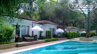 У отеля есть основной корпус, двухэтажные виллы и бунгало типа тех что на Мальдивах. Домики симпатичные но со звукоизоляцией тут явные проблемы. Когда стучались в дверь к соседкам и я открывал дверь, то тут же открывались двери еще в одном домике, напротив. Девушки заслышав мой голос спрашивали карты и т.д. Любой бы хулиган мог разнести этот домик в щепки. Правда при этом спал я здесь отлично. Постель жесткая. Комната здесь одна студия. С одной стороны два дивана, с другой двуспальная кровать. Между ними телевизор, который поворачивается в любую сторону. Освещение тусклое плюс еще окна закрыты деревьями это немного напрягало. Фишка номера это кофемашина с капсулами разных сортов кофе. А еще унитаз с бочком, напоминающим старые Айфоны. Девушки заценили разные косметические принадлежности и мыло от Булгари. Кстати, здесь шел в комплекте даже презерватив. Шоколада не было. Вино, фруктовая тарелка с испорченной грушей, чипсы, арахис, пиво и разные напитки. Ночью, кто жил в бунгало, жаловались на прохладу и чрезмерную влажность. Холода не заметил, но сырость почувствовал.