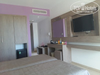Номер 214 Family Inland View, находится в дальнем корпусе, балкон выходит в сторону моря, но естественно с первого этажа море не видно :) Сам номер довольно просторный, мебель в нормальном состоянии. В номере телевизор с русскими каналами, фен, чайник, пара чашек и стаканов (ложек нет). Сейф и холодильник за отдельную плату. Wi-Fi в номере работает отлично.