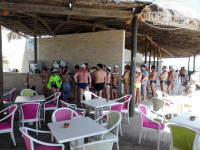 Еды было много качественной и разнообразной: говядина, индейка, печенка, почки, разнообразная рыба, курица, креветки, кальмары, арбузы, дыни, абрикосы, персики, финики, апельсины, десерты и т.д. НО все перечеркивает организация этой самой еды!!! Очереди как в СССР за всем: пицей, пончиками, грилем, чашками для чая, местом за столом, стаканчиками для пива, к барной стойке человек по 20. Пока везде постоишь, можно полчаса потерять. То ли не готовы к такому количеству отдыхающих, то ли нехватка персонала. Поставить второго бармена, и не будет злых в очереди. Колу, спрайт и пиво с водкой разливает один – и дети и взрослые стоят вместе (смотрите фото). Пиво и бутылочное вино вкусные, а вот на пляже и у бассейна наливают из бочки разбавленное.