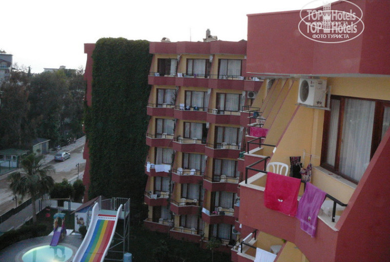 Ездили в середине мая. Отель выбрали спонтанно,честно говоря за такие деньги оправдывае.Моё мнение об отеле:я считаю отель на твёрдую 3+ т.к. реконструкция внутренняя не проводилась с момента его постройки(мебель совдеп,штукатурка отваливается),территория маленькая,рядом дорога,это недостатки отеля.Теперь о хорошем:питание хоть и однообразное,но готовят вкусно(через 2 дня давали жаренную форель,из мяса это курица в разном виде и говядину,фрукты-арбузы,апельсины,грейфрукт,лимон,яблоки и неизвестный фрукт).Персонал общительный,добожелательный,русскоговорящий ,что не мало важно,особенно к себе разполагал аниматор ОМАР ,прикольный клоун.Убираються через день,территория отеля также убирается,бассей чистят по мере загрязнения через день,два.Из развлечений бесплатно большой теннис(есть свой корт),пинг-понг,пляжный волейбол,водное поло.Имеется турецкая баня,она бесплатная кроме массажа(неплохая).Под отелем находится дискотека,работает с 23.30 - 4.00.Её в Окурджаларе знают все т.к.отличная хоть и маленькая ,но приличная.Пляж находиться по дороге вниз примерно в 120-150 метров.Пляж классный песочный, вход в море галечный. На пляже перед обедом готовят лепёшки с сыром или картошкой, из напитков соки растворимые,чай, кофе, вода пива нет.Т.к.отель предлагает только Пегас поэтому 95% отдыхающих это русские.Мы не жалеем ,что туда приехали.Спасибо.