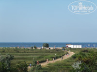 Пляж ракушечный недалеко от пансионата. Лежаки, гамаки, проблем с этим не было. Море мелкое, но зато волны были шикарные, до 1,5 метров в высоту, дети были в восторге.