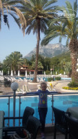 Отдыхали вдвоём (мама +дочка 7 лет) с 02,06,2016 по 09,06,2016.До этого отеля отдыхали в 5*о.Родоса. Летели от "Пегаса"-рейсы на переносились, трансфер отличный, гид Сервар ( извините может неправильно имя) все предложил, все рассказал, но не навязывал и это просто какое-то чудо. Спасибо ему большое. Жили в центрольном корпусе - номер 230. Вид на бассейн и великолепные горы, пальмы, и кусочек моря. Территория великолепная. Сосны, пальмы,газоны, цветы, чистейшее море. Народ в отеле- Украина80%,и Казхстан,Узбекистан,Азейбаржан... Сразу скажу- кто любит тишину(не любит звуки диско, павлинов с соседнего отеля, барные посиделки) -Вам в бунгало. Бунгало расположен через дорогу в тишине и спокойствии( идти недолго 5 мин., без лестниц- плавная дорожка.) Мы ходили туда каждый день на горках покататься. Номер- чистый, все работало, немного подуставший( но если только ночевать- пойдет). Персонал- все очень приветливые, на рецешен готовы помочь во всем. Огромное спасибо команде аниматоров- ребята выкладываются на 300%- особенно Эдди и Алине( они занимали наших детей 24 часа в сутки) Хотя некоторых детей я б уже три раза прибила за вопиющую невоспитанность и отморозков родителей.Питание- разнообразное, из мяса индюшка и курица , говядина (редко), из рыбы- скумбрия, и мелкая какая-то жаренная. Фрукты- арбуз,нектарины,яблоки,абрикосы. Сладкое-всевозможные турецкие. Пляж- песочно-галечный, при входе в море купная галька-берите аквашузы. Пирс есть- можно попрыгать и спускаться по нескольким лестницам. Огромный бар на пляже- можно не ходить на обед в главный ресторан. Рядом пекут лепешки с 11.00. Рестораны аля-карт бесплатно можно посетить один раз или турецкая кухня или рыбный. Мы выбрали рыбный и не прогадали- очень вкусно! Вообщем отдых удался. Есть вопросы- отвечу