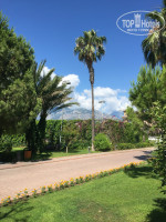 Территория отеля не большая, но все удобно расположено. Нам хватало. На территории много зелени. Возле лежаков горшочки для мусора, очень удобно. Вход в море - мелкая галька. Вода всегда была прозрачная и чистая. На пляже много лежаков, все под новыми навесами. Так же всегда были свободные. Большой пирс с которого можно попрыгать в море. На территории есть большой бассейн и поменьше с горками. Горки практически всегда работали.