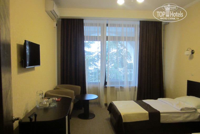 Отдыхала в 5 корпусе, там номера отремонтированы, 2 кровати-полуторки, шкаф, тумба с холодильником, 2 кресла, круглый столик, ковролин, белье белое, чисто. Балкон огромный, 2 мягких стула там же. Душ и санузел в номере. Фена нет. Не страшно, я брала свой. Четные номера выходят на юг. Вместо 1-мест мне дали 2-мест, номер больше, отдыхала по-королевски)))