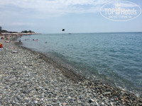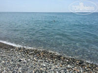 Пляж галечный, камни большие. На пляже работают спасатели- это плюс к безопасности.В море купались только в специальной обуви,которую можно купить на каждом углу, пара стоит 250 руб. Пляж обустроенный,относительно чистый, есть лежаки-200 руб.,зонты - 150 руб/день, качели на берегу 200 руб./час. Мы прошли немного в сторону там брали 2 лежака и зонт - 400 руб./день. Можно лежат на камнях, но очень неудобно. Море теплое, а что еще надо для хорошего отдыха на пляже!