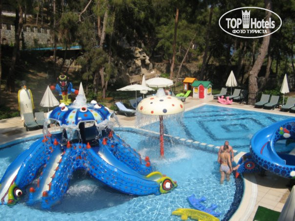 РЕКОМЕНДУЮ СЕМЬЯМ С ДЕТЬМИ.НЕ ПОЖАЛЕЕТЕ!!! Отель отличный...Была там 2 раза в 2007 и 2008.... сам отель действительно сказка!!! главная особенность отеля отсутствие часов. почему?! отель настолько шикарный, удобный и приятный, что забываешь о времени. оно там просто не имеет значения.. в этом отеле вы можете найти кучу положительных эмоция и радости...отличный аквапарк, территория шикарная, единственный минус - бунгало, чем дальше от главного здания, тем больше ступенечек придется проходить на пути к главному зданию....жила в главном здании... отличный бар и услужливый персонал.. напитки только турецкого производства, но немного иностранных. отличный чай!...в самом здании отеля есть сувенирные лавки. .там конечно цены на 1-2 доллара дороже.. так же есть магазин одежды, ювелирный, и небольшой продуктовый(для детей в основном, т.к. - одни сладости.). каскад бассейнов, много баров, бар с живой музыкой...после 25 мая ресторанчик в аквапарке становится бесплатный, а так платный... еда великолепная, есть спец."отдел" для детского питания - сосисочки, картошечка...мало специй. много еды, десерты полное объедение. номера хорошие. бесплатный мини-бар, в нем минералка, обычная вод кола и фанта, формочки для льда........ванна хорошая, телефончик над унитазом.. вообщем не плохо. БЫЛО БЕСПЛАТНОЕ СПА,ДЖАКУЗИ И БИЛЬЯРД!!