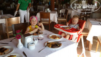 Для деток в ресторане отдельная посуда с одноразовыми слюнявчиками (такое тоже видела впервые) . Стульчиков для кормление большое количество, хватало всегда и на всех