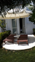 По-поводу лужайки перед номером. Это не единственная вилла перед которой она есть. Прсмотрите по карте отеля. Виллы находящиеся за нашей тоже имеют лужайки но не такие по величине, и всегда находятся в тени. В нашей вилле было и солнце. И я могла свободно позагорать возле номера на шезлонге в то время когда спал малыш. Плюс расположения еще конечно вот этот так сказать переход из бассейна в бассейн. Воды там немного поэтому желающих купаться там практически нет. А нам с детьми хватало. При этом я была спокойна что никто не двинет ногой по голове или ребенок зайдет в глубину