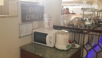 Также удивило наличие так называемого уголка для мамы, в котором микроволновка, блендер и подогреватель для бутылочек предоставлены для пользования 24 часа в сутки
