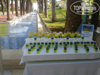 Территория отеля очень зеленая и очень чистая. По площади есть где погулять. Опять что удивило и порадовало- это покрытие дорожек по всей территории отеля. Покрыты они мягким покрытием, для людей, которые занимаются бегом. Ну а в нашем случае благодаря этому покрытию остались целыми колени детей. Так как при падении мы их не повреждали.
