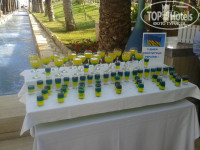 Питание разнообразное и очень вкусное: каждый день несколько видов мяса, рыба: форель тунец, скумбрия, много фруктов: апельсины, бананы, персики, яблоки, груши, нектарин, дыня, арбуз (все это было ежедневно на протяжении всего отдыха в неограниченном количестве) Повара радовали тематическими ужинами, где можно было попробовать блюда соответствующие заявленной тематике(нам довелось попробовать турецкую и азиатскую кухни)