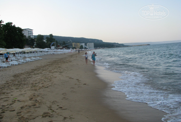 на мой взгляд некоторые жалобы на отель совершенно необоснованны, когда покупаешь путевку на двоих ниже стоимости перелета туда-обратно. хотя я согласна, что черные пакеты с хлебом , сыром, паштетом и огрызком огурца-это перебор))). было бы куда приятней и так же незатратно оставить в номере несколько персиков(стоят они там 3 лева кг, дешевле, чем в москве). и кулер с питьевой водой установить в холле-не такие это большие затраты...да, ещё грязнючие полотенца времен второй мировой войны, жесткие, как наждачная бумага.пожалуй, это все яркие минусы этого отеля).зато переспав ночь со слезами на глазах и с мыслью, как нас угораздило, даже бесплатно, тут поселиться, наутро мы неплохо позавтракали, выпили по чашечке кофе, сходили искупались и настроение стало просто чудесным. за те же деньги не задумываясь полечу в этот отель.такое чудесное море! волны каждый день!скучаю!