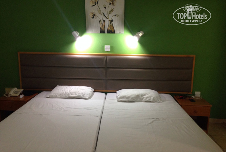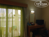 В отель привезли нас примерно в обед и сразу выдали ключи от номеров. Друзья бронировали номер с видом на море, а мы - без определенного вида, поэтому их заселили в основной корпус, а нас в один из двухэтажных. Наш номер был на первом этаже с видом на бассейн, а точнее на плитку бассейна, но нас это не смущало. номер небольшой, в зеленых тонах, мрачновато, но зато кондиционер работал прекрасно, а главное - бесплатно) в номере есть все необходимое. Порадовало наличие чайника и чашек, особенно это выручало в обед, т.к. у нас была система питания завтрак-ужин. Мыло и гель для душа постоянно обновлялись, полотенца и белье менялось своевременно. Розетки в номере - евро, но купить переходник - не проблема, хотя мы обошлись и без него - просто вставляли дужку от очков в свободный разъем и все работало отлично.