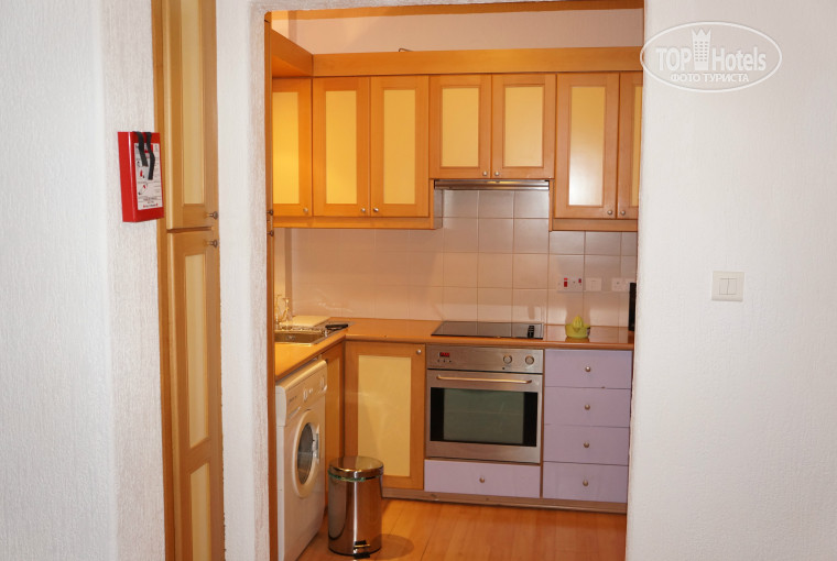 Отдыхали вдвоем в этом отеле. Разместили в корпусе Виолетта, на первом этаже. Огромный номер с гостиной (мягкий диван, ТВ-плазма, плетенная мебель, обеденный стол), отдельная кухня со всей встроенной техникой и посудой (но мы пользовались только бокалами, попивали местное вино на террасе). А так кто желает можно было и готовить на кухне, даже духовка была))). Была стиральная машина один раз пригодилась, постирали все свои вещи, правда в конце она сломалась, но для нас это уже было не критично мы все равно уезжали через день. Отдельная спальня, внутри стола фен. Просторная ванная комната. Убирали номер каждый день. Брали завтраки и ужины, иногда меняли ужины на обеды. По приезду не успели на ужин в первый день нам его заменили на обед в другой день (нужно на ресепшене договариваться, дают специальный талончик). Еда разнообразная, море салатов, горячих блюд, фрукты (арбузы, дыни, киви, апельсины, виноград, сливы, только клубники не было). На обеды и ужины всегда мороженое (6 видов). Поправился на 3 кг))) хотя и в спортзал ходил в отеле)). Спортзал хороший тоже бесплатно на минус первом этаже, плюс там еще бассейн можно после занятий окунуться. На территории отеля еще 2 бассейна, но мы предпочитали ходить на море 5-7 минут пешком не торопясь. В общем впечатления только положительные, не хотелось уезжать. Заход в море песчаный у других отелей галька, но ходить можно абсолютно на любые пляжи они все муниципальные.Обязательно крем от загара в первые дни. очень активное солнце!!! на пляже можно взять зонт лежаки 2 евро за предмет, но мы не брали загорали на своих полотенцах. В номерах нужен переходник на электророзетки, стоит 2 евро - 2.5 евро. Можно шариковой ручкой зацепить центральное отверстие и открыть шторки для 2-х других отверстий, тогда можно включить и нашу обычную вилку (мужчины поймут). Экскурсию брали не у туроператора, обошлась в 2 раза дешевле 16 евро на человека, съездили в пару монастырей, хороший гид. Море чуть похолодней чем предполагалось, из-за течений, но чистое.