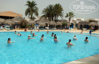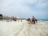 Отель расположен в двухэтажных корпусах, растянутых по всей территории, поэтому найти нужный номер без провожатого на первый раз сильно проблематично. Радостный персонал вас проводит и поможет с чемоданами, небольшой бакшиш приветствуется. Номера разные, есть с 3 кроватями, есть с одной, путаницы с количеством кроватей не возникло, но заселили нас в самый крайний корпус, топать до бассейна и до ресторана сильно долго и запутано, короче пошли менять номер на поближе расположенный. Немного наличных в этом случае вам пригодится. Сразу совет, есть номера с видом на соседний пустырь и они как раз в дальних корпусах 400-е номера вроде как и т.д. Опять же ближе к бассейну номера более шумные ибо музыка днем, шоу и дискотека до поздна, кто любит совсем тишину, селитесь подальше. В номерах телевизор, зеркало, урна, светильник , холодильника нет, имейте ввиду. Кондиционер центральный, управление на стене, работает конечно, но хотелось иногда более прохладный климат в номере днем. С другой стороны под утро кутаешься в простыню ибо зябко становится, так что нормально работает можно сказать. Опять же мы проветривали номер, периодически создавая сквозняк от двери на балкон, прекрасный бриз и даже комфортней кондиционера. Далее встроеный шкаф для одежды. В ванной фен, туалет, раковина и ванна с душем. Шампунь и кондиционер не дают, только мыло. Сейф только на ресепшен, в зависимости от срока вашего пребывания в отеле - 10 дней 18 евро. На территории есть WiFi, но ловит у бассейна, на ресепшен и в баре, остальные места условно работают, в номерах связи нет. Уборка номеров чуть не каждый день, отказывались периодически, чтобы отдохнуть в номере. Кормят замечательно, мясо, рыба, курица, фрукты в виде дыни, арбуза, сливы, яблок. Нам все понравилось. Бар наливает до 23 часов, местные напитки на любителя, но пиво неплохое и столовое вино, белое красное и розовое, сухие как я понял. В отеле есть несколько магазинчиков, типа косметики, одежды, сувениры и т.п. Обменник на ресепшен. По пути на пляж есть еще магазин. Напитки типа соков растворимых, газировка на опресненной воде, остальное все съедобно. На пляже наливают только растворимые напитки и питьевую воду, пиво и вино за деньги. На пляже зонтики, лежаки, матрасы бесплатно, есть душ, переодевалка, туалет, на ночь выход на пляж закрывают. Пляжные полотенца выдают бесплатно с карточками для обмена без депозита. Водные горки работают утром и примерно до обеда. Команда аниматоров веселит весь день разными мероприятиями до конца вечернего шоу. Население отеля большей частью - русские, присутствуют французы, немцы, чехи, но иностранцев меньше 10% по моему.