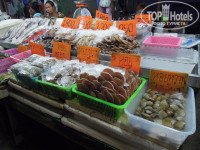 Кушали мы на рынке на улице с красными фонариками,при входе на рынок доброжелательная женщина слева. Самое вкусное,всегда возвращались к ней. Порция самые большие,средняя цена 150 батт. Кто то из отеля кушал ы трех минутах пешком слева от отеля,забегаловка с синими скатертями,цены там ниже в два раза, но порции очень маленькие,запах не выносим.и не вкусно.