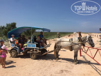 С пляжа несколько раз возвращались в повозке , лошадка нас везла до входа на территорию 25 руб дети и 50 руб взрослый .