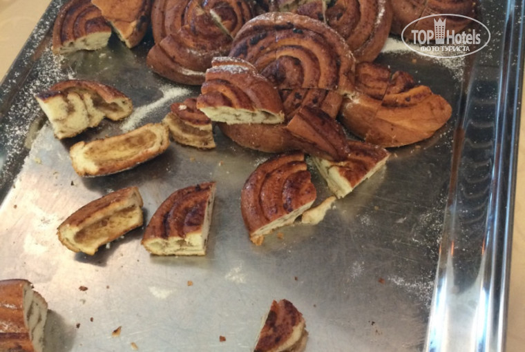 Следующее "положительное" впечатление было от обеда.. Захожу в помещение с гордым названием "Ресторан". Шведский стол. Начинаю осмотр. Салаты все уже заправлены, взять отдельно помидоры или огурцы возможности нет. Тем более, что просто порезанных помидор нет вообще. И их не было на протяжении всех 11 дней. В лучшем случае, помидоры можно было увидеть в каком либо салате. Наковыряла огурцов, пошла выбирать суп. Супов было 4 вида . Вегетарианские щи ( они были ежедневно), бульон с цыплёнком ( цыплёнка можно было выловить только, если придти к началу трапезы) тоже ежедневно, и ещё какие-то борщи-солянки с очень (на мой взгляд) неприятным запахом дешёвой столовской еды. Вторых блюд, по меню, было много, но практически все они были , попросту, не вкусные.Даже такие блюда, как жареная картошка, были отвратительные! Компот из ягод больше напоминал о-оооочень слабый раствор марганцовки. Из выпечки нарезанная на кусочки плюшка, сушки, овсяное печенье, зефир тоже порезанный. За счастье были профитроли с заварным кремом и слойки. Не удивительно, что это счастье пользовалось повышенным спросом. Фрукты, конечно же," сезонные")))) апельсины, киви, бананы,яблоки,груши, все прошлогоднего урожая (и это в середине июня!!!) и все порезанное. Такую же картину я наблюдала за ужином. Приличные были только завтраки, хотя меня очень удивило наличие ячневой и кукурузной каш. А вот овсяная каша на молоке была всего лишь 2 раза. Шеф-повару нужно присвоить 10 звезд Антимишлем за бесспорное искусство портить продукты!