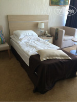 Приехала в санаторий после 14.00, разместили сразу же. Номер на 7 этаже, вид на территорию ( на момент бронирования все одноместные номера с видом на море были отданы госзаказу). И сразу же удивление ( это мягко сказано)! Кровать в номере 90 см в ширину!!!! Когда смотрела фото на сайте санатория, то было понятно, что кровать не широкая, но на 90 см она никак не смотрится, минимум 120 см! Я не обладаю крупными формами, ношу 44-46(российский) размер одежды, НО НА ТАКОЙ КРОВАТИ Я В ПОСЛЕДНИЙ РАЗ СПАЛА В ПИОНЕРСКОМ ЛАГЕРЕ!!!!! Кстати, одеяло не более 120 см в ширину!