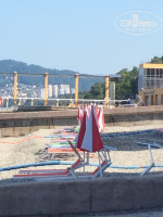 Далее пляж. Зонты, шезлонги есть. Но матрасы на шезлонги не полагаются. Отдыхающим корпуса "Сочи" повезло больше, на их пляже были более комфортные шезлонги, на которые матрасы не требуются.