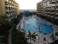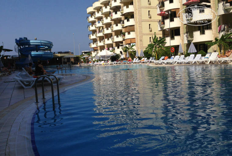 Отдыхали в августе 2015 года: муж,я, двое детей, система питания все включено.В целом все неплохо, есть минусы и плюсы. Плюсы в том, что отель спокойный, еда приличная, очередей за едой не было (только мороженое давали всего 1 час в день, и 1 в руки), персонал доброжелательный, бассейн чистый и теплый, с лежаками проблем не было. Бассейн детский для мелкотни и взрослый. Очень удобный номер с двумя комнатами и балконом с видом на бассейн и море. Мебель конечно старенькая, но нас устраивало. При заезде в номер обнаружили, что не работает холодильник и слив в душе забит, сразу сообщили на рецепшен, пока были на море (часа два), вернулись, все работает. Вай фай бесплатный, работал нормально. Море теплое, пляж-очень мелкая галька, лежаков всегда хватало, на пляже чисто. Выход на пляж-подземный переход. Из еды на пляже снэки и безалкогольные напитки. Не понравился очень заход в море: крупные скользкие валуны, даже взрослым тяжело заходить, не говорю про детей. Анимация была, правда вялая, но нам это не важно было. Уборка в номере ежедневная, смена белья тоже. Недалеко супермаркет с фиксированными ценами, выбор достаточный для неприхотливых людей. При заезде никаких проблем не возникло, приехали поздно вечером, в 22.30 по местному времени, нас заселили, накормили. Выезжали рано утром, примерно в 5.00, проблем тоже не возникло, всем довольны.