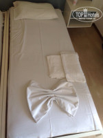 Всем доброго времени суток! Находились в Греции на о. Крит именно в этом отеле в начале июля 2016 г. Отель не тянет на 3 звезды, он скорее 2,5 звезды. Самый огромный плюс этого отеля - это уборка. Девушка (болгарка вроде) каждый день (примерно в обеденное время) делала уборку, в номерах было чисто. Постельное белье и полотенца менялись через день. Действительно большой плюс. Читал отзыв перед выездом, что отдыхающие сталкивались с отсутствием горячей воды, у нас этого замечено не было. Вода в душе и холодная и горячая всегда была. Горячей водой не пользовался по причине того, что в такое духоте и жаре холодная вода была само то! Действительно есть один косяк в душе - душевой поддон с низкими бортами и занавеской, которая по над стенкой не закрепляется и через эти щели вода брызгает на пол, откуда потом должна стекаться в слив (дырка в полу под раковиной), но почему то она у нас туда никогда путь не находила. На пол кидалось полотенце (которое имеется у них специально для этого) и никакого дискомфорта дальше это не причиняло. В комнате имеются 2 кровати, 2 тумбочки, трюмо с зеркалом, ТВ с 3 каналами (первый, ртр и немецкий канал), сейф, кондиционер. Что касается кондера (ОЧЕНЬ НУЖНАЯ ШТУКА!) и сейфа - оплачивается отдельно. Кондер 6 евро в сутки, Сейф 14 евро неделя. Могут притащить вам холодильник за 15 евро в неделю.