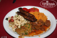 2. Еда: ресторан один( недостатки мелкие: не лежали вовремя столовые приборы) Завтрак- вареные яйца, выпечка, сыр, колбаса, салаты, кофемашина, сладостей не было. Обед- супы двух видов без изменений, мясное- тушеная жесткая говядина, курица, наподобие котлеты, редко жаренные кальмары и рыба, мясная запеканка. Гарниры- макароны, спагетти в вкусном соусе, печеный картофель , один раз пюре. Салаты из – помидоров, огурцов, кабачков, с разными соусами. Десерт- арбузы, дыни, пирожное, торты, выпечка. Ужин- почти то же самое ,что и в обед, с дополнением пиццы, подобие шаурмы. БАР- он один у бассейна(это больная тема) Безалкогольные напитки –кола, фанта ,спрайт и когтели . Алкоголь ЭТО ОГРОМНЫЙ МИНУС ОТЕЛЯ!!!! Единственно нормальный это разливное ПИВО из кегов. Остальное пить не возможно- ОТРАВА( виски, вино, водка, буха, пить не возможно, сильно разбавлено водой) Совет: алкоголь везите с собой, или покупайте в местных супермаркетах!