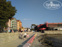 Расположение отеля довольно удачное. Как неоднократно писалось, находится он в культурном центре Помория - городка с интересным характером. Он небольшой, гостеприимный, ухоженный, имеющий давнюю историю. Порадовало, что в нем, помимо стандартных магазинчиков и кафе, есть музеи, летний кинотеатр, красивые пирсы, продуктовый рынок, церкви. А центральная улица города (как раз в том месте, где находится отель) превращается в пешеходную зону. Вечером по ней гуляет огромное количество туристов, выступают уличные артисты, работают аттракционы.