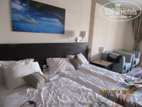 Просторный, уютный, по размерам как двухкомнатная квартира (около 40 м2). В номере LCD телевизор 32”, мини-бар, помимо кроватей два кресла, прикроватные тумбочки, столик, два стула, большое зеркало и туалетный стол, тумбочка для обуви, шкаф купе с встроенным сейфом (сейф, кстати, бесплатный), ванная комната с ванной, умывальником, большим зеркалом, унитазом-биде, и очень хорошим феном. Каждый день пополняли бар (две 0,5 л. питьевой воды). Уборка номера ежедневно, за 11 дней три раза меняли постель. Балкон в номере большой, на балконе столик и два кресла.