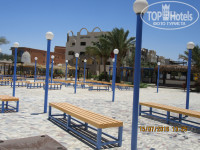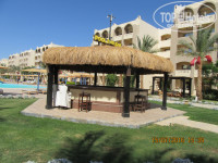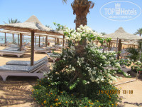 Территория огромная, пока дойдешь до пляжа можно загореть и сгореть. Территория красивая, по всей территории высажены пальмы, различные деревца (гранат, лимон, мандарин и т.д.). В вечернее время все пальмы подсвечиваются, и так по территории много подсветки. На территории находятся 4 бассейна, у каждого по бару (всего 3 бара), которые работают 10:00 до 18:00 но, когда мы были у бассейнов работали только 2 бара (возле первого бассейна постоянно, и у второго или третьего бассейна, в зависимости от наличия людей у бассейна). На территории есть небольшой зоопарк, там есть обезьянки, попугаи, индюки, утки и другие животные.