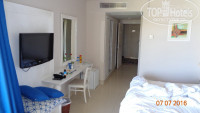Оформление прошло быстро, нас заселили в номер на 2-м этаже с балконом и видом на бассейн, и море.