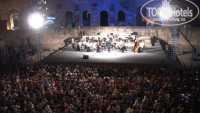 -поражающая акустика, непередаваемая атмосфера, величественные стены амфитеатра, чарующая огненная подсветка арок, звездное вечернее небо и музыка, заполняющая это сказочное, почти мистическое пространство.