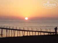 Море "детское" - очень теплое и мелкое (до буйков можно дойти пешком). Вечером было ощущение, что заходишь в теплую ванну. Плавала далеко за буйками, чтобы коленками дно не задевать. Дети с удовольствием плескались на мелководье.