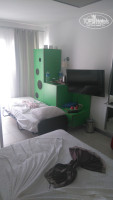 Отдыхали в отеле с 25.07.16 по 03.08.16. Заселили практически сразу, но когда мы увидели номер, сказать, что мы были шокированы - ничего не сказать. Мало того, что не предоставили дополнительную кровать для младшей дочки, так ещё и не совсем было понятно, куда её можно поставить. Пошли ругаться на рецепцию - те ответили, что кровать сейчас предоставят. Чуть было не передумали заселяться, но вернувшись в номер, решили все-таки остаться. Все - таки цена подразумевает экономное размещение, но я не ожидал, что до такой степени. Доставили дополнительную кровать, нормального размера, в общем, кое -как разместились. Правда кровать полностью блокировала доступ к холодильнику, хотя его все - равно пришлось отключить, потому-что он просто неимоверно рычал, каждые пять минут включаясь. Теперь пару слов о санузле. Чья больная фантазия его придумала - я не представляю. Стеклянная дверь без возможности закрыться в туалете, а со стороны душа стеклянная же, почти прозрачная панель. Звукоизоляции никакой, кто -то ночью пойдет в туалет - проснутся все! Система кондиционирования работает отлично! Из моющих средств - мыло в контейнере и гель-шампуть тоже в контейнере. Как пополняли мини-бар - не знаю, тот кто его должен пополнять, видимо не заморачивался с отодвиганием кровати, а доступа к холодильнику у него небыло. Уборка в номере длится ровно пять минут - как-то забыл пляжные полотенца в номере, дошел до моря, вернулся, а уже успели убрать (не было меня 5-7 минут). Заключается уборка в замене полотенец, докладывания туалетной бумаги и красивого складывания покрывал. А... забыл, ещё грязь немного размазывали. Шторка в душе была поломанная, через нее постоянно сочилась вода, когда кто то принимал душ. Приходилось все время вымакивать воду.