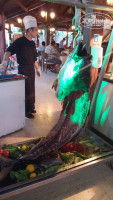 Немного о еде. Соки - мерзость порошковая, выпивка - практически вся гадость, из местного - съедобый только Бейлиз . Из хорошего - пиво и айран. Свежевыжатый апельсиновый сок 1$ по утрам. В первый же день попали на вечер морепродуктов - давали отличного тунца и всякие изыски. Качеством и количеством еды был приятно удивлен (впечатление портили только мухи). Часто была говядина (в основном тушеная), курица, индейка, масса сладостей, фрукты, разнообразные сыры. Уголок детских продуктов. Каждый вечер была какая-то тематическая кухня и повара удивляли всякими изысками: паста. морепродукты, вкуснейшая турецкая шаурма, отменная печеная говядина. Но, опять же, НАХРЕНА, делать роллы? То, что он называют роллами - бесподобная мерзость с варенной морковкой. Пытались изобразить пельмени - та же хрень, сантиметровое тесто, мерзкая начинка, какой-то зелёный соус. Но, это общей картины никак не портит. Полноценно поесть в обед так же можно и в кафе на пляже, там же подают замечательные гёзлеме. Повторюсь - еда отличная.