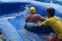 Заход в море проблемный - прямо возле берега находятся остатки старого пирса, при волне может хорошо приложить. Мы уходили левее - там камней не было. Бассейны неплохие. Катались с детьми на горках - неплохие, но требуют починки я на одной из горок порвал плавки и хорошо счесал кобчик. Есть горка рафтинга, но она или сломанна, или они экономят не запуская второй поток. Жена с дочкой катались - хрень полная, не хватает потока воды и плюшка просто застревает на поворотах, катающийся ждет пока его кто-то не протолкнет. Горки работают не целый день с 10-00 до 12-00 и с 14-00 до 16-45. Понравился бассейн со стороны горок с пологим заходом - для деток просто идеально.
