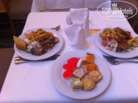 Теперь хочу перейти к питанию. Оно было выше всяких похвал. Даже не буду описывать все изобилие, каждый день представленное на шведских столах в ресторане. Просто хочется поблагодарить поваров, которые каждый день, в неимоверную жарищу строгали разнообразные салатики, жарили и парили всякую вкусную рыбешку, мясинку и вкуснейшую выпечку, оставаясь при этом вежливыми и предупредительными, и все это для нашего удовольствия. Последние два дня пребывания были немного омрачены переносом обедов в кафе на пляже. С чем это было связано мы выяснять не стали, видимо производственная необходимость, но из-за большого количества народа образовались многочисленные очереди, причем за всеми видами продуктов. Это, конечно, снизило качество обслуживания в этот период времени.