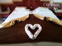 На утро в 11.00 я снова обратилась к администратору по поводу номера, и он без лишних разговоров переселил меня в 244 номер. Началась белая полоса в моем отдыхе))) ОТЛИЧНО!!! В номере чисто, работало все, никаких запахов, телевизор, холодильник, сейф. Насекомых не было. Балкон выходит на детскую площадку и виден обзор анимационной площадки и бассейн. Уборщица, милая, приветливая женщина, независимо от того, оставляли ей деньги или нет, делала из полотенец разную красоту. Полотенца меняла каждый день. Причем их было всегда по 5))). Уборка хорошая. Персонал доброжелательный.