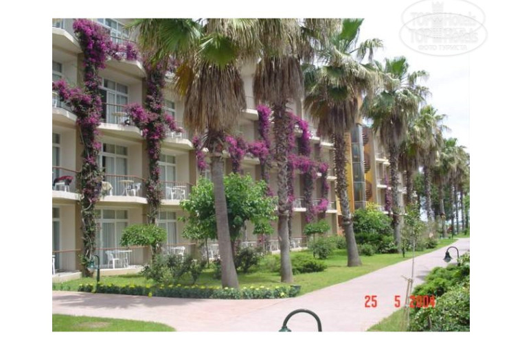 Отдыхали в этом отеле в конце мая 2004 года.Небольшая улочка спошь утыканная отелями..Большие белые колоны при въезде в отель заметно отличались от всех отелей которые мы проезжали.Входим в ресепшен..чистенько и как то уж очень простовато по сравнению с ресепшенами отелей системы WOW.Прибыли мы в 3 часа ночи,народу было не так уж и много,но в основном все были с друзьями и парами,и поэтому при размещении просили номера рядом или как можно ближе друг с другом,на что получали вежливые отказы.На ресепшене по-русски вообще ни кто не разговаривает (это как информация).Я тоже была с друзьями,но рваться в первые ряды при регистрации не стали..мы подождали пока толпа разошлась,вложили в ваучер 20баксов и нам дали две комнаты рядом друг с другом.Счастливые мы побежали в номер.Первое что хотелось сделать -это принять ванну,но придя в номер мы с ужасом обнаружили что ванны нет! как в моем,так и в соеднем номере!!! :)На уровне пола находился металлический поддон со сливом и все! небыло даже раздвижных огрождений от брызг.Мы снова вернулись на ресепшен и обьяснили что нам нужны номера с ванной,на что нам ответили,что ванны имеют только семейные номера.Мы удивились,но неотступили...и все же получили свои два номера с ванной.Как оказалось потом,нас поселили в номера для инвалидов :).Итак о номерах: все номера имеют ванну,небольшую но все же,у всех номеров есть балконы включая и номера на первом этаже,сам номер небольшой с белой мебелью, две одно или одна двуспальная кровать,две тумбочки,два плетеных кресла,плетеный журнальный столик,большой стол в котором находиться холодильник,шкаф с сейфом,телевизор(3 русских канала),телефон.Есть одно НО -две раковины выведены в саму комнату, тоесть они не в ванной комнате,а как бы в самом номере, они как бы углубленны в стенке,в семейных двухэтажных номерах телевизор есть только на первом этаже.И еще... сначало у нас это вызвало шок,но потом это оказалось нормой для этого отеля- вода в туалете при спуске спускается и снова наполняет унитаз на четверть,а сначало мы думали что у нас засор :)Уборка номеров и пополнение мини-бара производиться с 9 и до 17 часов.((могут недокладывать пиво) смена белья раз в два дня.