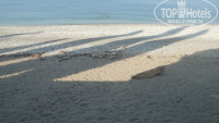 Ну, про оборудованный пляж, красочно описанным на сайте тоже не пахнет. Пляж условно оборудован. Выдают зонтики, стоят лежаки в куче. Бери сам лежак, куда хочешь ставь. Пляж грязноват, хотя на момент Вашего прибытие может быть чистым. На пляже, по дальней линии прибоя, давно засохшие водоросли, которые даже не начинали убирать за время нашего отдыха (14 дней), а из этого можно сделать вывод, что и задолго до нашего приезда там ничего не убирали.