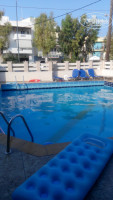 Еда нормальная. Нет разнообразия на завтраках но вполне сытно. В обед и ужин гарниров 4 вида-менялись всегда. Мясо вкусное. Арбуз в обед и на ужин. Супов нет. Чай неприятный, с соленым привкусом. Кофе так себе, только самый первый, пока не разбавили. В баре постоянно кола, севен ап, пиво, раки, бренди. Воды нет, нужно в ближайшем магазине брать. Там направо от отеля в пяти минутах хотьбы один из двух на весь город более-менее крупный магазин Халкидакис( или что-то вроде того).