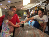 Когда будете сдавать ключи на ресепшне, следите, чтобы положили в ячейку для ключей. У нас было такое, что ключ у них где-то затерялся, а нам объявили штраф в 50 лв. Слава Богу, сами там у себя нашли. Потом такое повторилось ещё. А в целом персонал понравился. Думали, что бармен стрёмный у бассейна, но потом с ним разговорились, оказался милейшим человеком. Просто реально усталый. На него иной раз смотреть жалко было, сами себе Пепси наливали, чтоб его не беспокоить. Бармен в отеле поживее, тоже приятным оказался молодым человеком. Но и он не робот. Я бы посоветовала администрации составить график работы барменов таким образом, чтобы они не выглядели на грани обморока. Это же лицо отеля. Когда у барменов заканчиваются улыбки, отдыхающие принимают это на свой счет и обижаются.