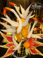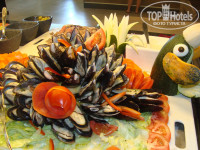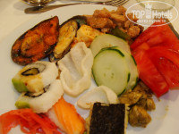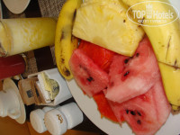 Питание в ресторане на 5+. Утром свежие фрукты ( бананы,манго,арбуз,дыня,папая и еще несколько видов тропических фруктов), свежевыжатые соки (каждое утро) . На обед морепродукты,супы,мясо,овощи,фрукты. Ужин морепродукты,различные виды мяса и рыбы,суши. В общем все что душе угодно. Когда сидишь в ресторане официанты предлагают: кофе,чай,напитки или шампанское,вино. (все бесплатно).