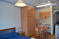 Номер. В номере было чистенько, мебель старенькая, комод с телевизором, стол с выдвижными ящиками (в самом нижнем был фен), две прикроватные тумбочки кровать (2 полуторки сдвинутые вместе), шкаф большой и тут же кухонный уголок, с микроволновкой, тостером, чайником, холодильником и плитой. Вся необходимая посуда есть и даже штопор. На балконе все было грязное и не опрятное… муравьи. Наш номер выходил на шоссе,за которым была псарня и ослиная ферма,собаки и ослики так выли и визжали,что их было слышно, особенно рано утром.