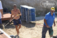 Пляж. Своего пляжа у отеля нет, есть только общественный, но можно сказать самый лучший из ближайших! Идти минут 7, через дорогу от отеля. Песок, водичка прозрачная, бывают водоросли, но они из-за камней-волунов, которые есть на глубине. Пляж для деток очень хороший, потому что на глубину надо идти и прилично, минут 5. Лежаки и зонты платные: 2,5евро с предмета (самый главный начальник бичбоев, носит билетики в своих трусах весь день ,куда смотрит администрация, это он показывает свое отношение к тем кто покупает у него эти билетики!(фото прикрепляется к отзыву),его надменность по отношению к отдыхающим на пляже зашкаливала). Можно на песочке расположиться,при желании.Пляж оборудован душем, туалетом, раздевалкой. Чистят пляж не часто, раз в 2 недели. Поэтому увидеть можете все, что угодно.