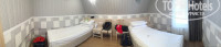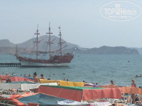 Всем привет! Впервые в этом году были семьёй в Крыму, нам все очень понравилось. В России очень давно не отдыхали, но в этом году решили сделать себе приключение и поехали на машинах. Друзья посоветовали данный отель, мы забронировали бунгало( нас 4 человека) Потом случайно прочитала отзывы на данном сайте и ужаснулась( Соответственно, ехали и готовились ко всему🙈. Но, приехав на место, быстро заселившись, были приятно удивлены отличным двухкомнатным номером с отдельным входом и балконом👍🏽. В номере : кондиционер справлялся со всем объемом и на ночь выключали, холодильник с морозилкой, большая двуспальная кровать, удобный матрац и подушки , шкаф, гладильная доска, утюг, вешалки, чайник и чашки, в санузле шампунь , кондиционер, мыло, чистые белые полотенца всех типов, даже были пляжные. На окнах сетки. На балконе стол со стульями и сушилка. Все абсолютно новое и очень приличное! Нам даже показалось, что мы первые там жили )) Короче мы настолько обрадовались номеру, что решили не растраиваться из-за еды, начитавшись жутких отзывов)) Но , и тут нас ждал приятный сюрприз)) никакой "только гречки " круглыми сутками и "вчерашних остатков" мы не обнаружили! Может и не было белых скатертей))), но это не страшно )) мне питание вообще показалось домашним: котлетки, курочка , рагу, фаршированный перец, очень вкусный омлет, запеканка , творог ...всегда были овощи , салаты, причём заправить можно чем хочешь , фрукты( дыня сладкая запомнилась)) почему-то картофель, даже отварной с зеленью впечатлил , видимо там ещё продукты имеют вкус, по сравнению с Москвой )) Старший сын гундел вначале, что нет картошки фри, а я радовалась, что хоть тут он поест нормальной еды)) . Море: галька, пляж не только этого отеля, но для нас лежаки бесплатно, народу конечно много, но мы находили места под дальним навесом. Пляж чистый, очень! порадовало , что отдыхающие курили только в отведённых для курения местах, 🙏🏽спасибо за уважение к другим некурящим и детям )) Развлечений много: скутеры,прогулочные катера, кораблики, бананы, катамараны, парашюты, рядом аквапарк и дельфинарий . На территории отеля два бассейна и бар с прохладительными напитками , мне очень лимонный понравился .