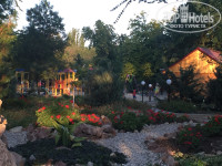 Очень красиво оформлена территория : розы потрясающей красоты всех цветов, хвойники всех мастей, я только и разглядывала ходила, восхищалась!!))
